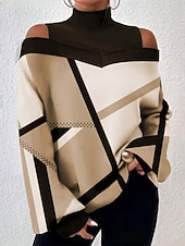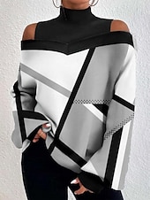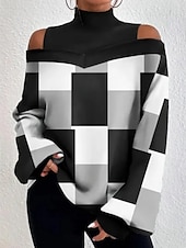 More information about Women's Blouse Geometric Plaid Stylish Casual Long Sleeve High Neck Regular Tops Daily Patchwork Print Black White Khaki Gray Spring Fall Winter