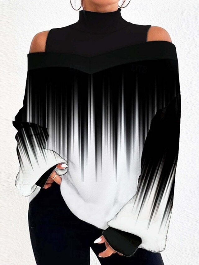 HOT ! Women's Blouse Geometric Plaid Stylish Casual Long Sleeve High Neck Regular Tops Daily Patchwork Print Black White Khaki Gray Spring Fall Winter