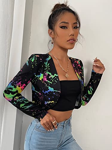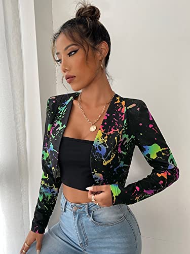 Women's Jackets Fashion Splash Ink Print Open Front Blazer Jackets & Coats (Color : Multicolor, Size : X-Small) 1