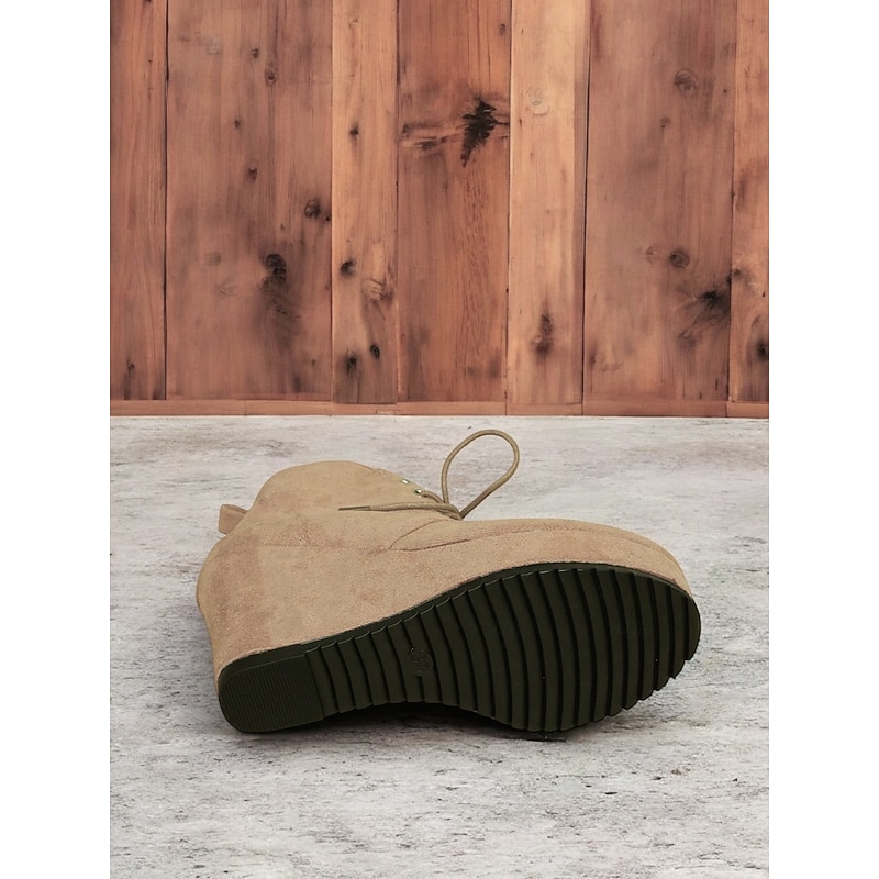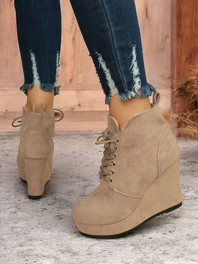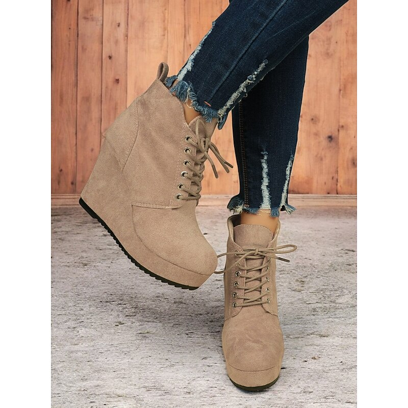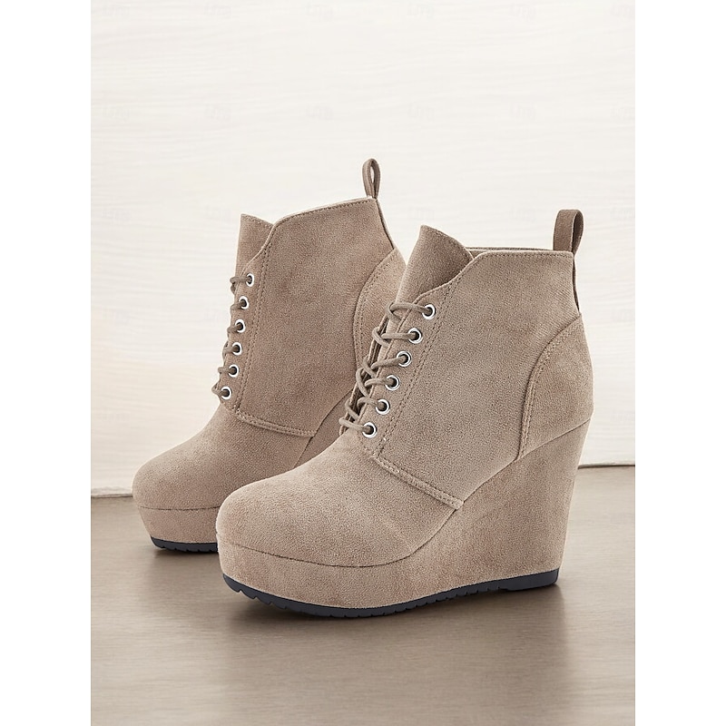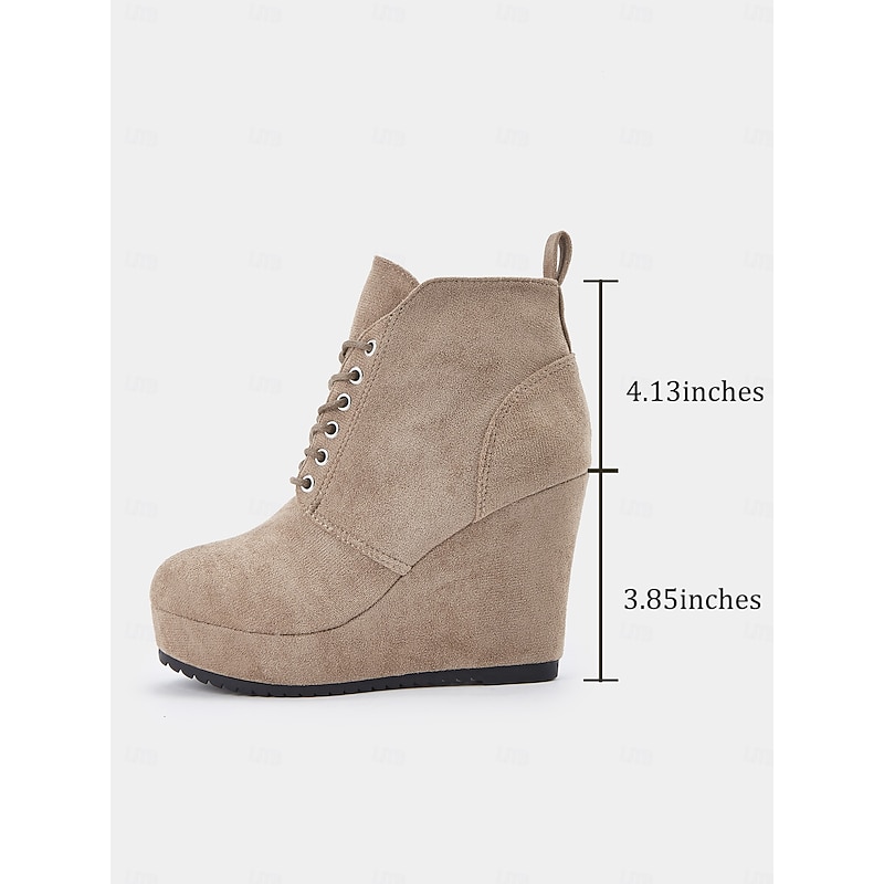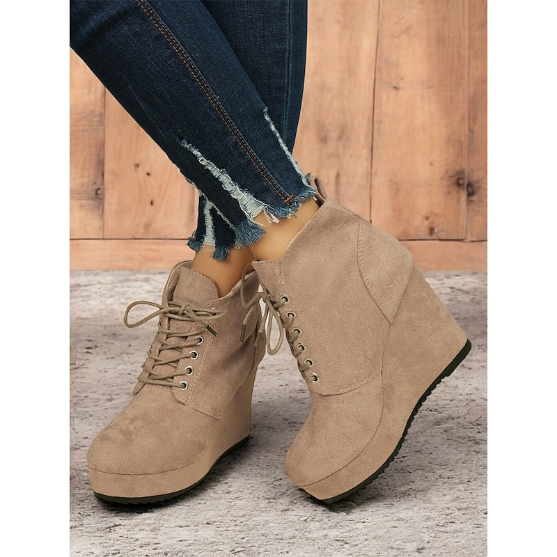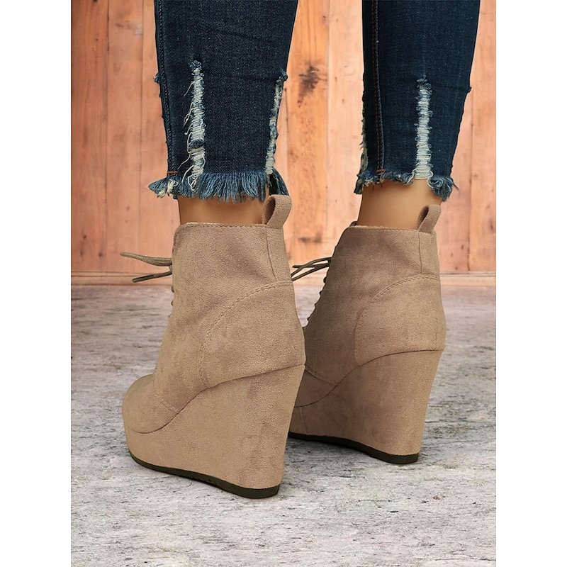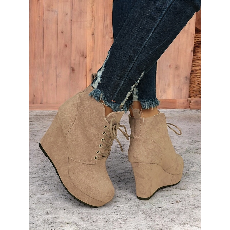 HOT ! Women's Faux Suede Wedge Ankle Boots with Lace-Up Design - Comfortable Platform Boots for Casual and Everyday Wear