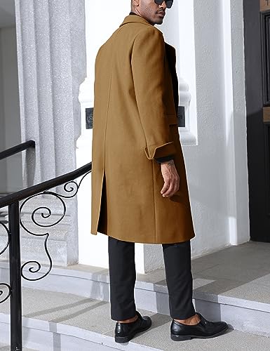 Springrain Men's Pea Coat Double Breasted Overcoat Lapel Coat Classic Long Trench Coat 4