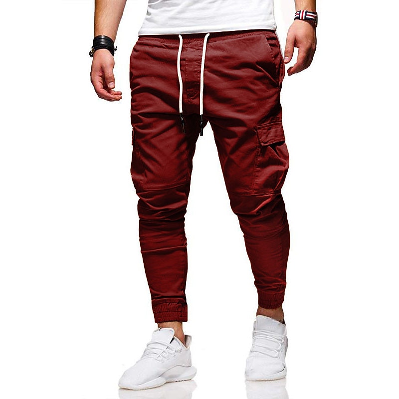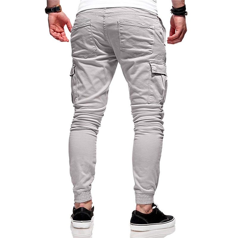 HOT ! Men's Cargo Pants Trousers Elastic Waist Elastic Cuff Plain Comfort Breathable Daily Sports Black White