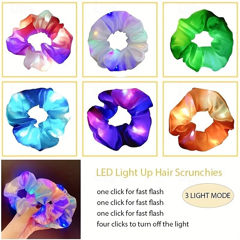 $15.49 - 6pcs LED Light-Up Scrunchies - Vibrant Hair Ties for Women & Girls Colorful Glow in the Dark with Multiple Light Modes Perfect Fashion Accessory for Christmas & Easter Parties Durable & Fun Gifts 2025. Shop for cheap Party Supplies online? Buy at lightinthebox.com on sale today!