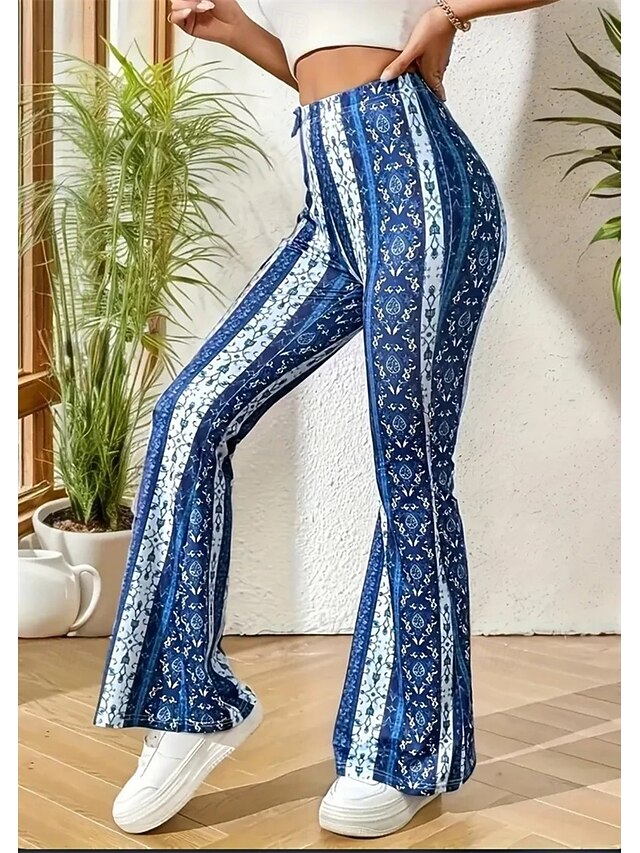 Retro Vintage Boho 1970s Bell Bottoms Pants Flare Leggings Flared Trousers Disco High Waist Tribal Fancy Dress Women's Halloween Carnival Vacation Music Festival Festival Adults' Pants 7