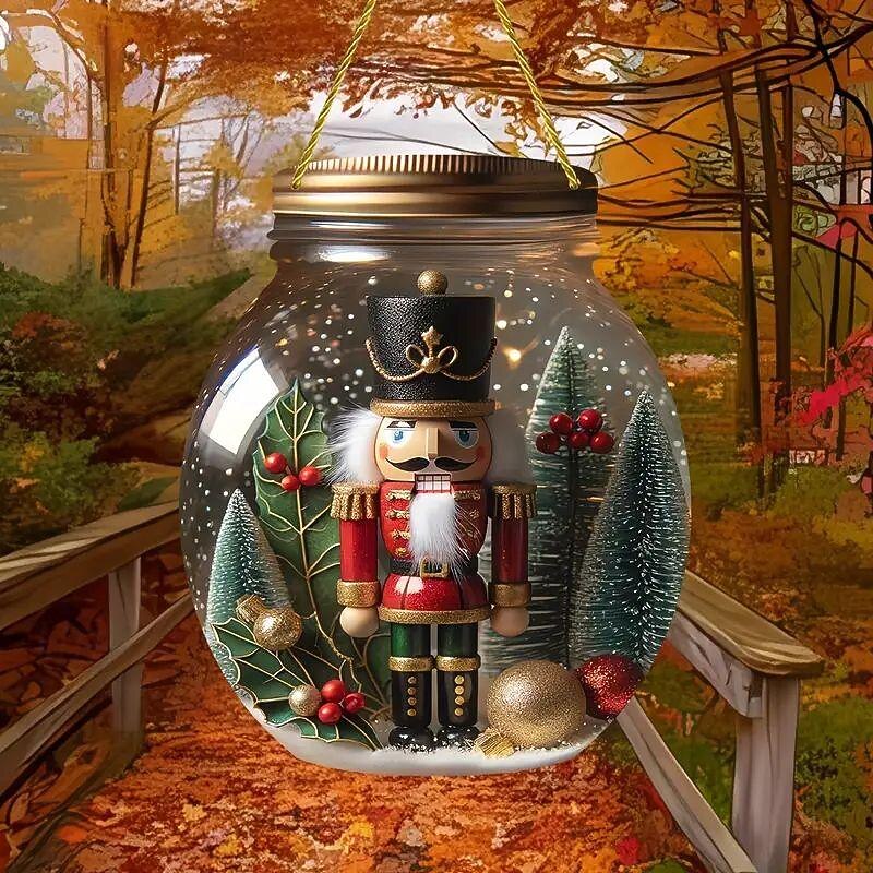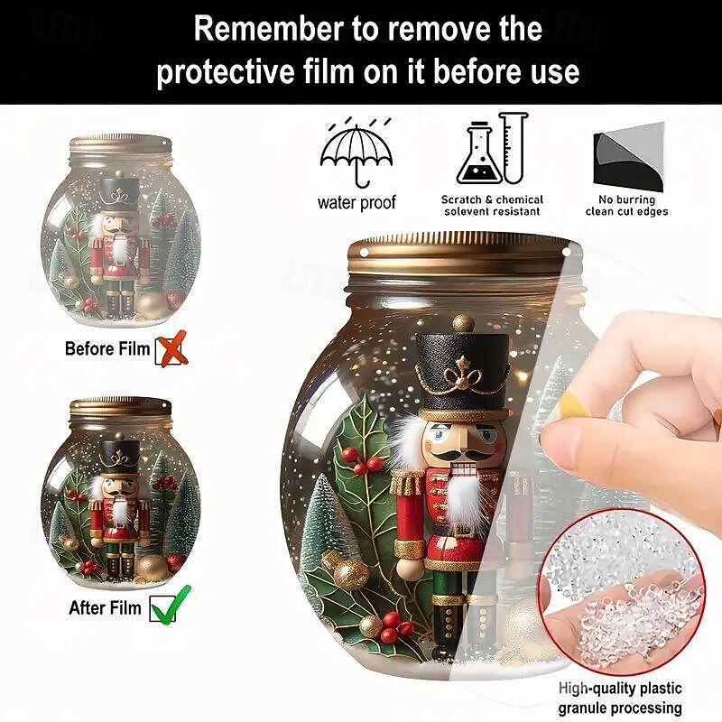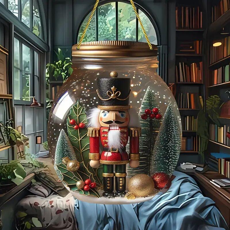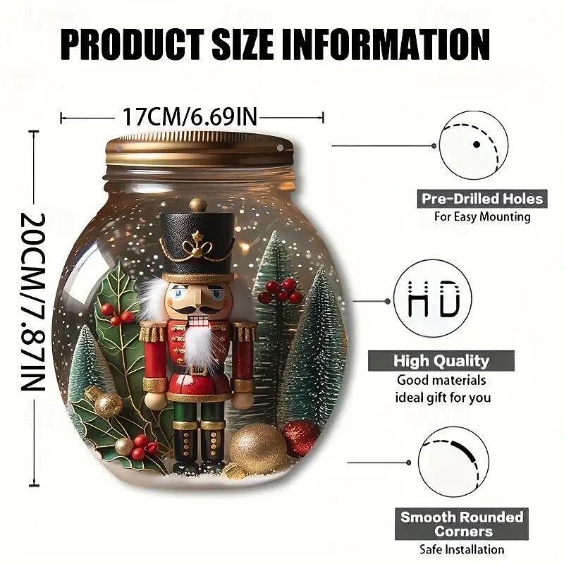 Christmas 2D Nutcracker Acrylic Pendant - Round Jar Design - 7.87x6.69 inches - Ideal for Bedroom, Living Room, and Courtyard Decor 11
