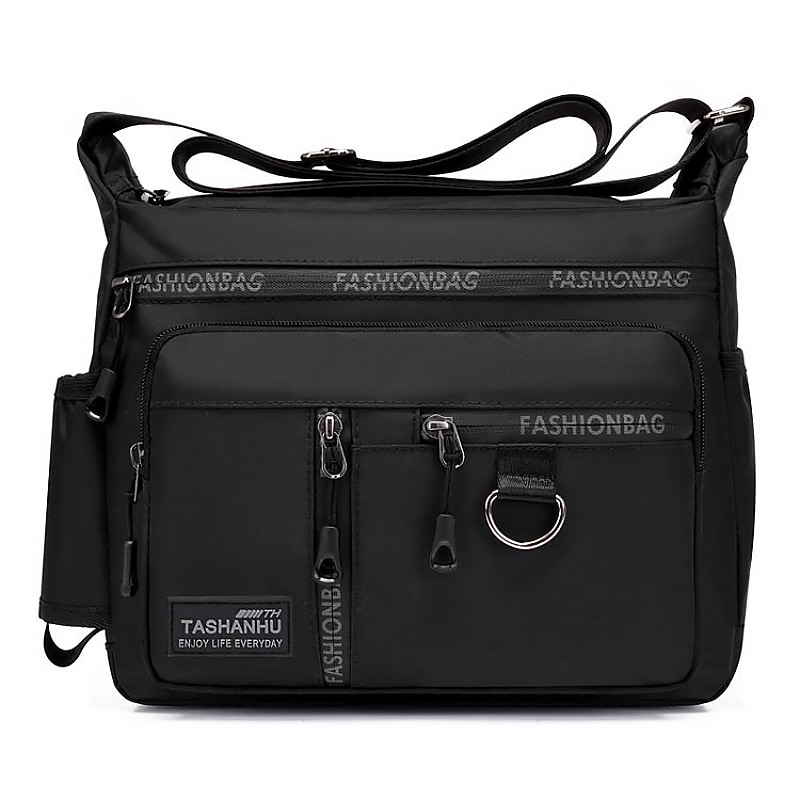 HOT ! Men's Black Multi-pocket Nylon Crossbody Messenger Bag – Lightweight Waterproof Shoulder Bag for Work, Travel, and Daily Commute