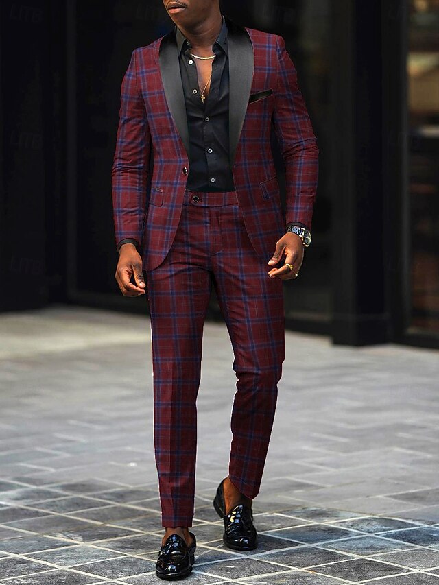 $119.99 - Men's Party Prom Party Suits Shawl Lapel Red Fashion Retro Vintage Plaid Standard Fit 2 Piece Single Breasted One-button 2025. Shop for cheap Holiday party online? Buy at lightinthebox.com on sale today!