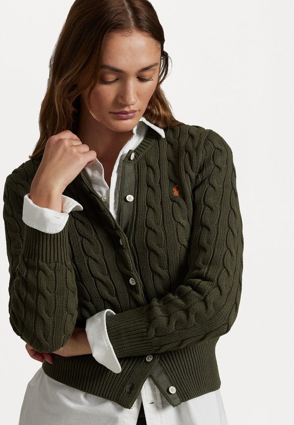 More information about CABLE KNIT COTTON CREWNECK CARDIGAN - Cardigan - canopy olive