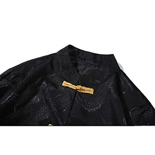 • fashionable Chinese style:classic vintage Chinese hanfu,stand collar,frog buttons,dragon pattern fabric with dragon embroidery on both sleeves,rolled up cuffs,full of ethnic tastes.the side stripes make it morden fashionable.