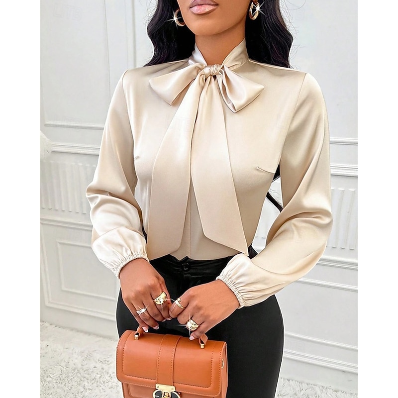More information about Women's Shirt Elegant Dressy Satin Solid Color Elegant Stylish Basic Long Sleeve Tie Neck Regular Tops Daily Going out Bow Apricot Spring Fall