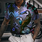 Highlights [Fabric] : Crafted from a lightweight, breathable material, this polo shirt ensures comfort during warm-weather wear. The fabric’s softness adds to the ease, making it ideal for all-day outings. [Fit] : Featuring a classic polo-style collar and short sleeves, the shirt offers a relaxed yet polished fit, perfect for casual and golfing occasions. [Design Highlights] : Showcasing a striking 3D print design, this shirt is adorned with colorful tropical birds and lush foliage, which gives it a fun and vibrant look. The quarter zip adds a modern touch and adjustability, while the collared neckline enhances its sophisticated appeal. [Occasions] : This versatile polo is perfect for beach outings, vacation adventures, and casual parties, adding a playful charm to any leisure activity. It's a standout choice for those looking to make a bold fashion statement. [Size Range] : Available in a broad range of sizes from S to 5XL, ensuring a fit for a wide array of body types, catering to individual preferences for comfort and style.