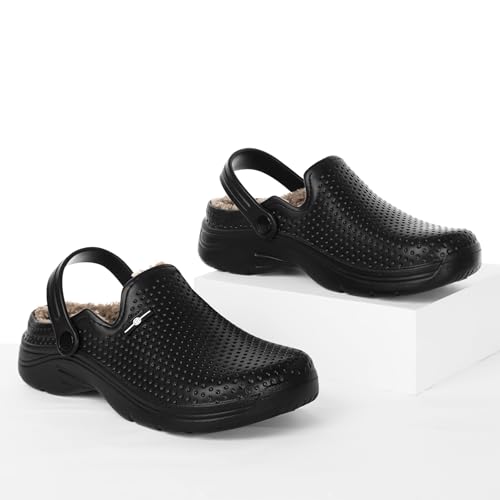 Men's Women's Lined Clogs Winter Waterproof Slippers Slip On Garden Shoes Non-Slip Home House Slipper Indoor Outdoor Mules with Soft Fleece Lining 6