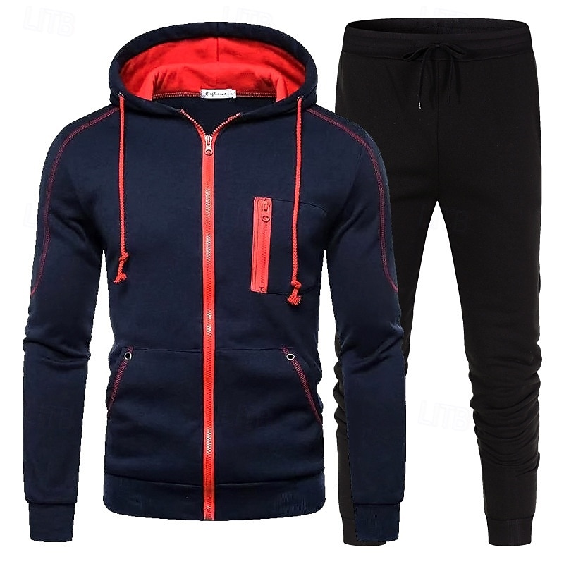 $29.99 - Men's Hoodie Tracksuit Full Zip Hoodie Sweatsuit Black Red Navy Blue Royal Blue Light Grey Hooded Color Block 2 Piece Sports & Outdoor Daily Holiday Polyester Streetwear Basic Casual Spring Fall 2025. Shop for cheap Basic Tracksuits online? Buy at lightinthebox.com on sale today!