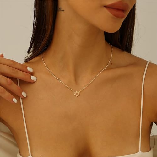 Gold Necklace for Women, 14k Plated Dainty Star of David Pendant Necklace, Non Tarnish Waterproof, Gift Idea 7