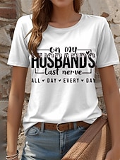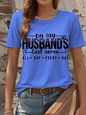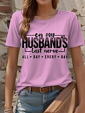 More information about Women's T Shirt Graphic Letter Stylish Casual Short Sleeve Round Neck Regular Tops Daily Weekend Print White Pink Blue Purple Summer Spring Ridicule Husband