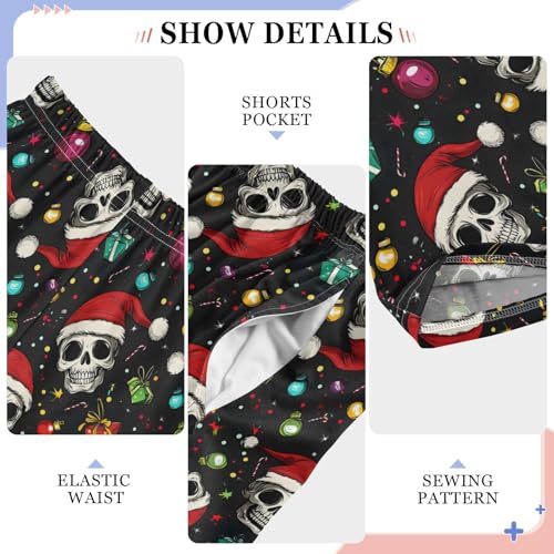 Christmas Pajama Pants Skull with Santa Hats Long Sleep Pants Lounge Bottoms 7