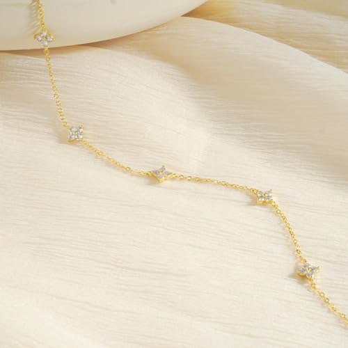 HOT ! Dainty Silver Gold Necklaces for Women Cute Station Choker Necklace Cubic Zirconia Simulated Diamond Necklace Simple Layering CZ Necklace Trendy Jewelry Gifts