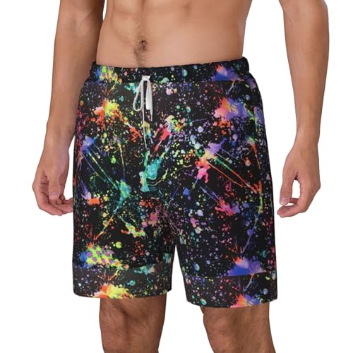Men's Colorful Paint-Standard Print Quick-Dry Mesh Swim Trunks Stretch Lining Beach Shorts Surfing Summer Vacations 5