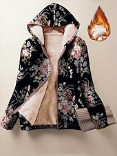 More information about Women's Zip Up Hoodies Floral Graphic Geometric Warm Active Vintage Long Sleeve Hooded Regular Tops Home Work Dailywear Zip Up Patchwork Zipper Black Spring Fall Winter