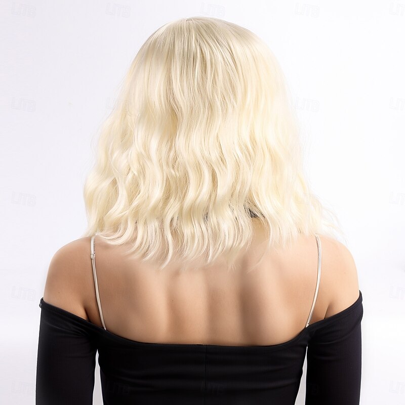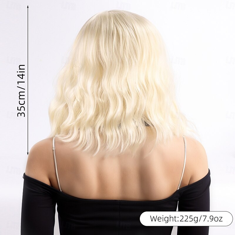 More information about Synthetic Wig Bouncy Curl Curly Weave Middle Part Asymmetrical Machine Made Wig 14 inch A1 Synthetic Hair Women's Elastic Comfortable Color Gradient Blonde
