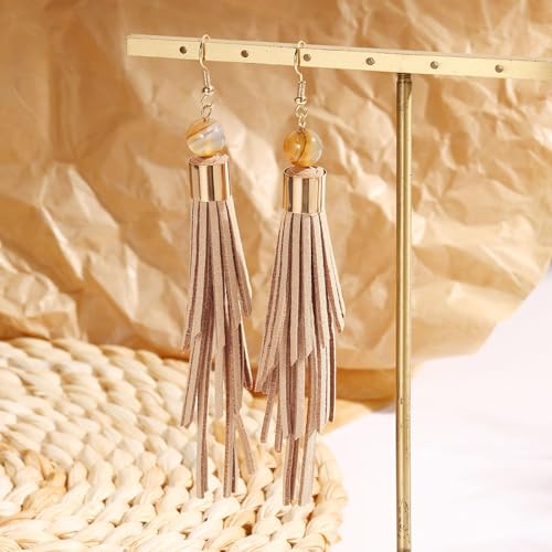 • ♥UNIQUE DESIGN♥ The body of these leather layered tassel earrings is a designed and cut leather tassel, and the use of metal hoops at the top of the tassel and beads that match the colour of the tassel add to the overall bohemian style.