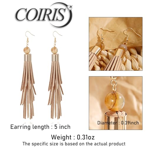More information about Coiris Boho Leather Layered Tassel Earrings for Women Lightweight Leather Fringe Dangle Earrings Handmade Bohemian Summer Beach Western Drop Earrings for Women