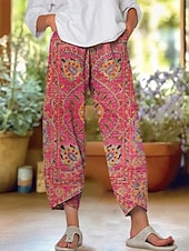 More information about Women's Chinos Baggy Pants Vacation Vintage Ethnic Style Ankle-Length High Waist Graphic Geometric Paisley Drawstring Patchwork Printing Breathable Micro-elastic Vacation Casual Daily Magenta Summer