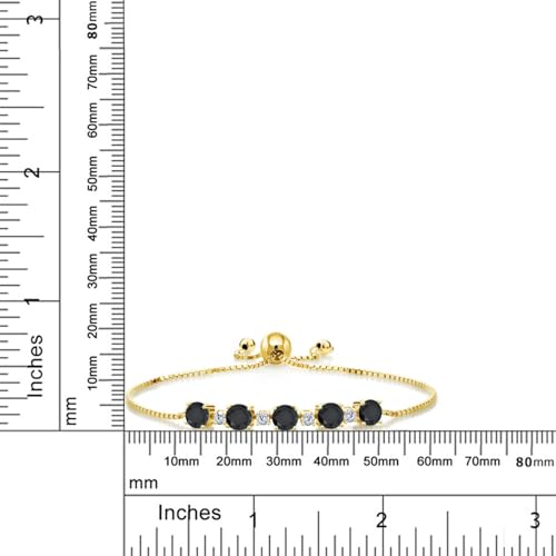 18K Yellow Gold Plated Silver Gemstone Birthstone and White Moissanite Tennis Bracelet for Women | Round 5MM and 2.5MM | Adjustable Bolo Design | Easy-On Easy-Off | Fully Adjustable Up to 9 Inch 3