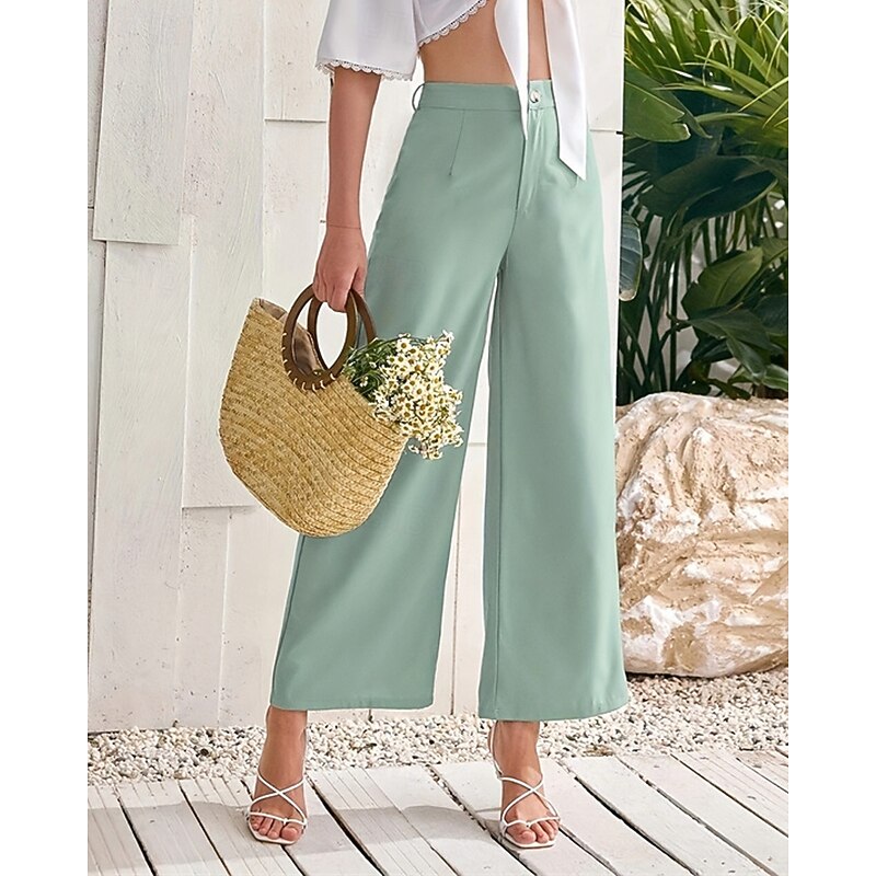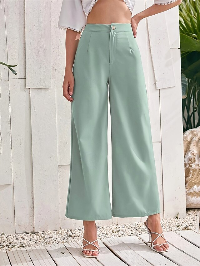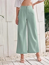 More information about Women's Wide Leg Cropped Pants Palazzo Pants Fashion Streetwear Ankle-Length High Waist Plain Breathability Comfortable Street Daily Wear Going out Green Summer Spring Regular Fit