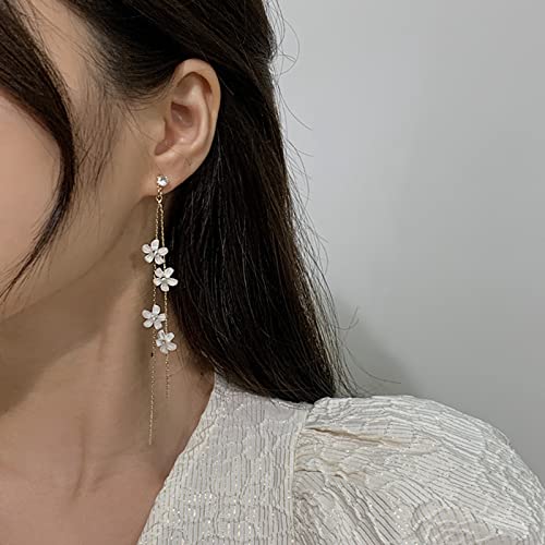 More information about Unique Chic Long Tassel Chain Flower Drop Earrings 925 Silver Needle Post Back Linear Dangle Dainty Floral Long White Jewelry Gifts