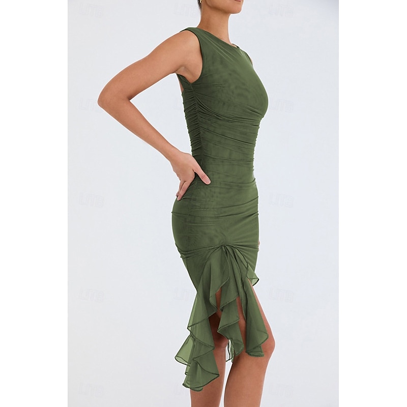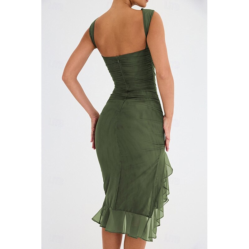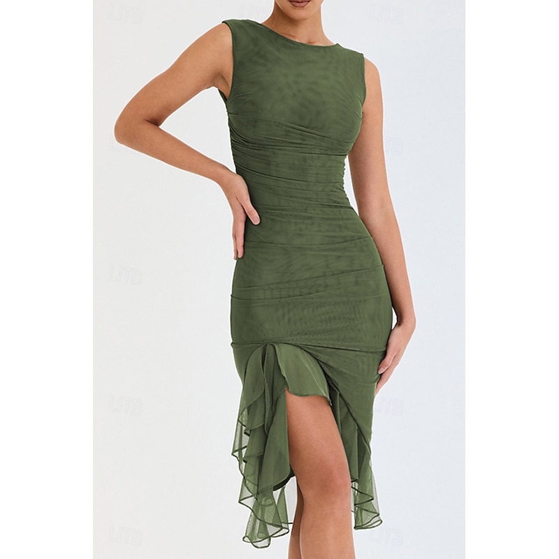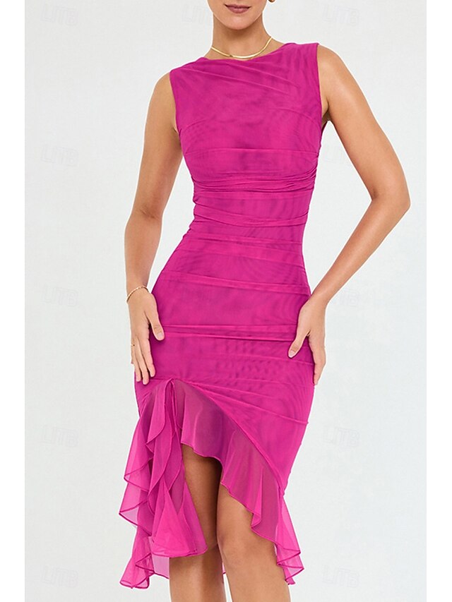 More information about Women's Midi Dress Graduation Dress Cocktail Dress Wedding Guest Dress Sheath Dress Fashion Modern Outdoor Graduation Tea Party Regular Fit Plain Sleeveless Crew Neck Black Army Green Purple Rose Red