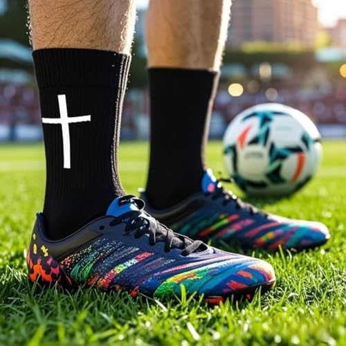 • FAITH INSPIRED DESIGN - Each soccer sock is intricately knitted with inspirational Bible verses, featuring a striking cross design on the side to inspire faith. Perfect as a heartfelt gift for birthdays, Christmas, or Easter. Ideal for family, teammates and fellow believers.