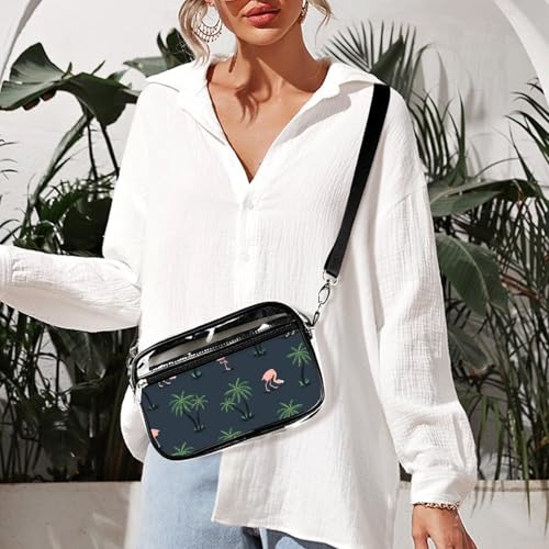 HOT ! Pink Flamingo Birds and Palm Trees Clear Purse Messenger Bag Crossbody Bags with Adjustable Shoulder Strap Front Pocket
