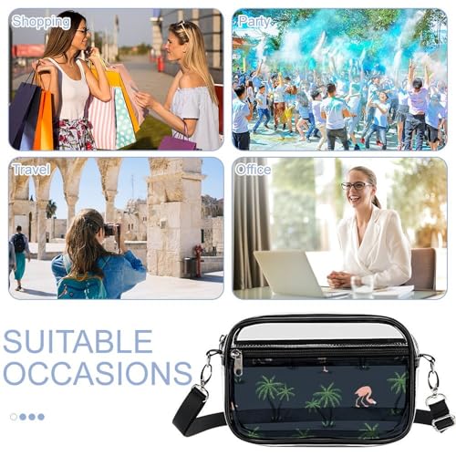 Pink Flamingo Birds and Palm Trees Clear Purse Messenger Bag Crossbody Bags with Adjustable Shoulder Strap Front Pocket 7