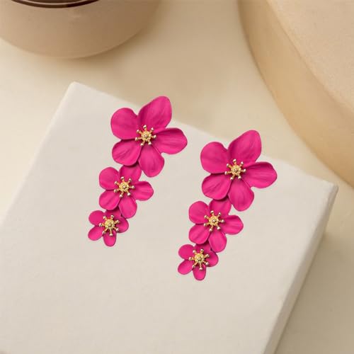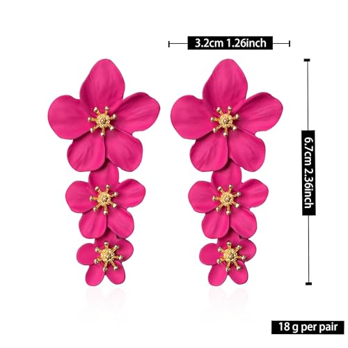 HOT ! Three Layer Flower Earrings for Women Boho Statement Flower Earrings Bohemian Flower Dangle Earrings Flower Jewelry Gift (Hot Pink)