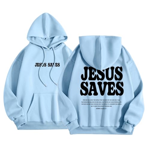 HOT ! Christian Hoodie for Men Jesus Saves Letter Print Pullover Tops with Pocket Inspirational Long Sleeve Fall Hooded Sweatshirt