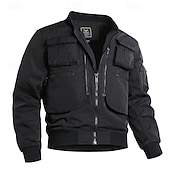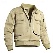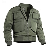 More information about Men's Bomber Jacket Tactical Jacket Windcheater Jacket Sports Outdoor Camping & Hiking Waterproof Windbreaker Zipper Pocket Fall Winter Solid Color Active Hooded Regular Black Dark Green Khaki Jacket