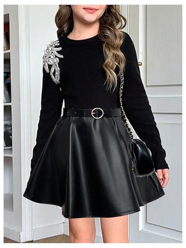 SweatyRocks Girl's Glitter Pearl Beaded Tee Shirt Long Sleeve Crew Neck Slim Fit Elegant Tee Tops 6