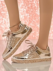 More information about Women's Gold Glitter Sneakers - Shiny Lace-Up Casual Shoes with Sparkly Design for Nightlife, Clubbing and Party Outfits
