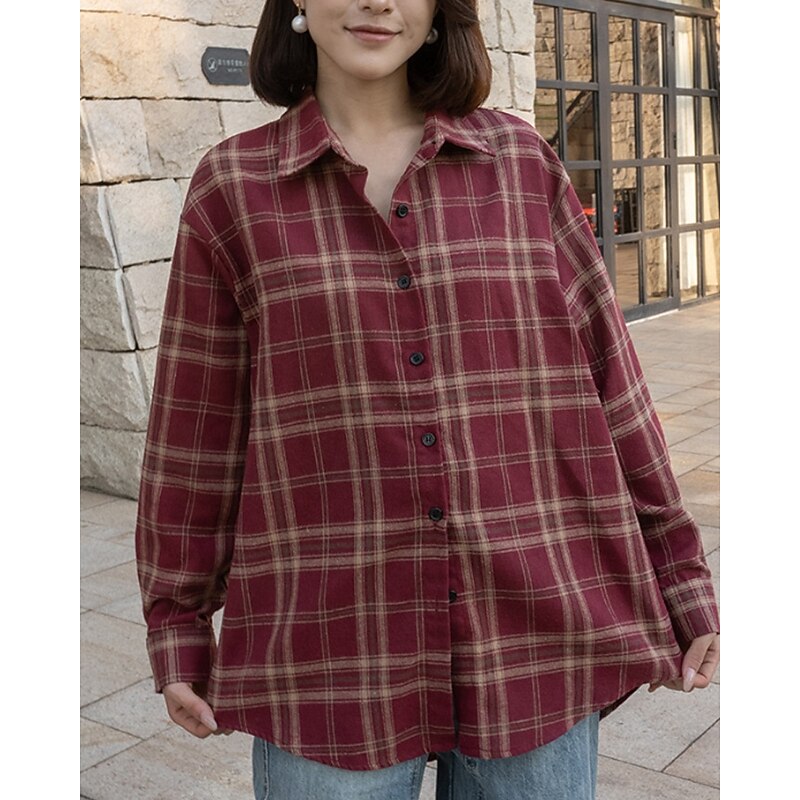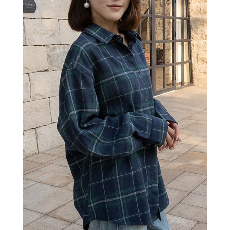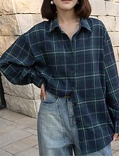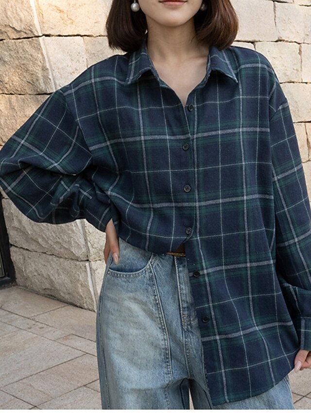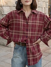 More information about Women's Shirt Blouse Plaid Casual Long Sleeve Shirt Collar Regular Tops Daily Holiday Going out Buttons Red Navy Blue Fall
