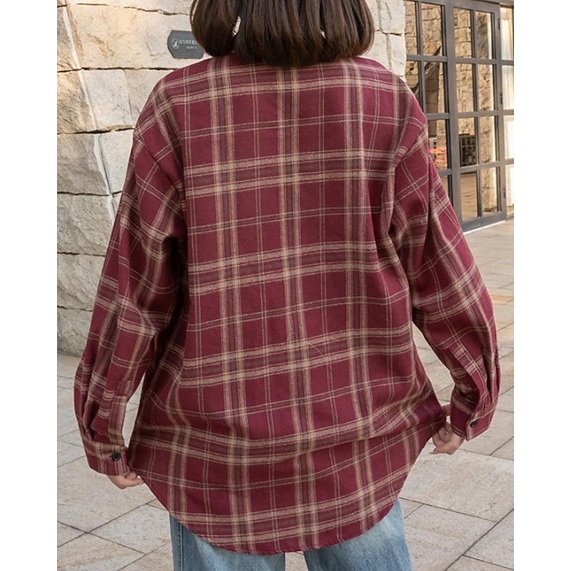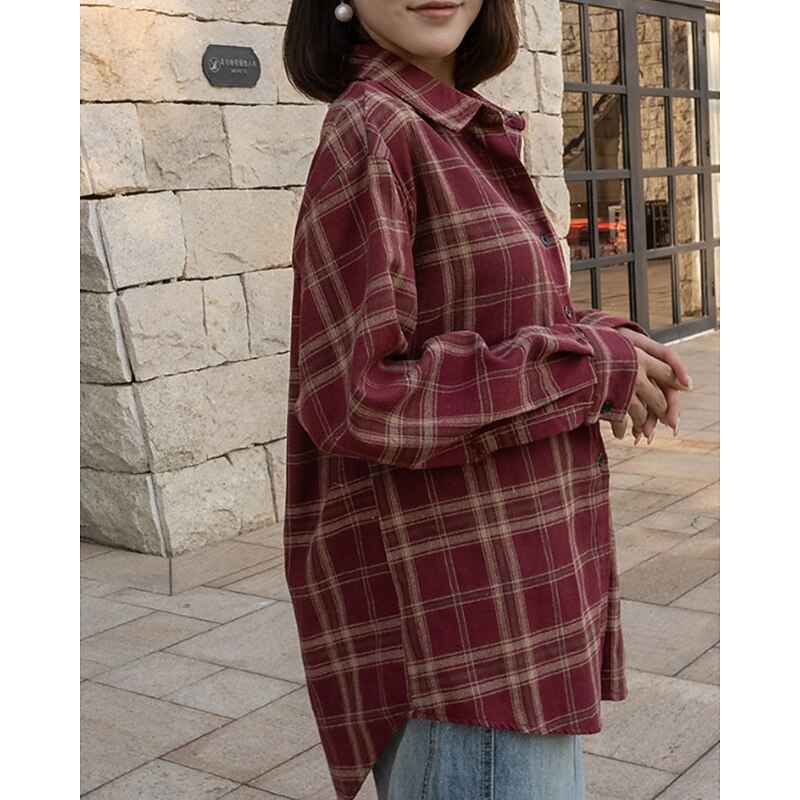 Women's Shirt Blouse Plaid Casual Long Sleeve Shirt Collar Regular Tops Daily Holiday Going out Buttons Red Navy Blue Fall 8