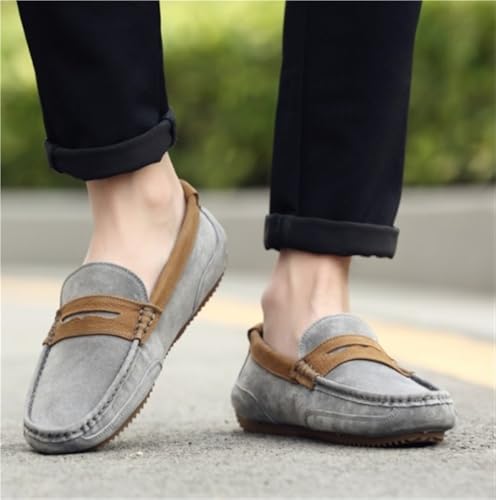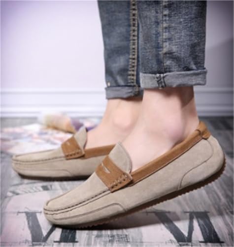 Mens Loafers Shoe Suede Vamp Genuine Leather Stitching Details Round Toe Flexible Flat Heel Comfortable Lightweight Anti-Slip 6