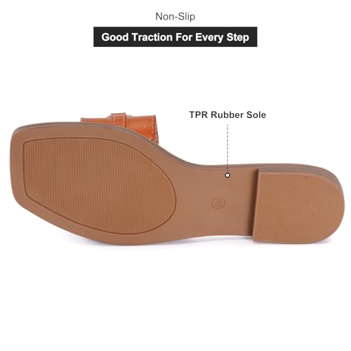 mazeskin Women's Square Open Toe Dressy Slide Sandals Cute Summer Comfortable Flat Slippers with Metal buckle 5