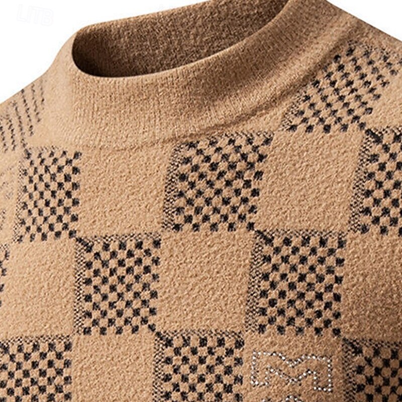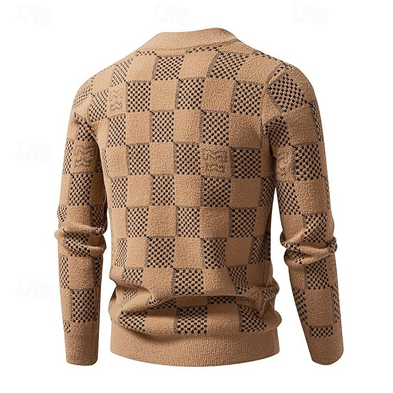 Men's Sweater Pullover Sweater Jumper Ribbed Knit Regular Tops Knitted Slim Fit Plaid Crew Neck Knitwear Contemporary Casual Daily Wear Clothing Apparel Fall Winter Camel Burgundy M L XL 11