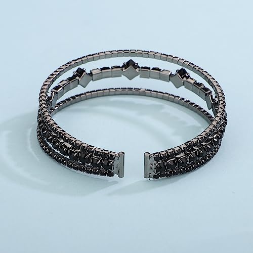 HOT ! Xerling Black Rhinestones Open Cuff Stretch Bangle Bracelets Boho Layered Sparkle Crystal Tennis Stretchable Bracelets for Women