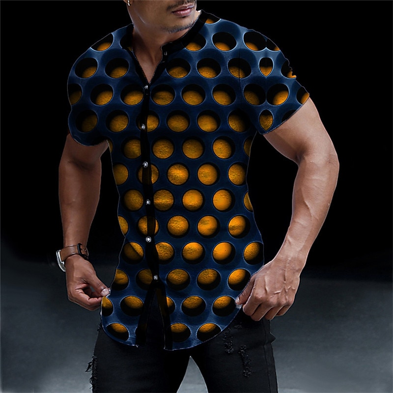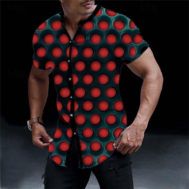 More information about Men's Optical Illusion Shirt Button Up Shirt Short Sleeve Fashion Designer Casual Vacation Casual Going out Spring & Summer Stand Collar Print Black Yellow Red Blue Sky Blue