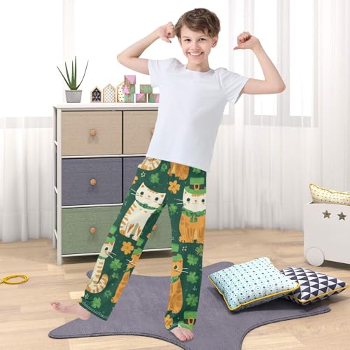 More information about Cat Lucky Clovers Boys Long Pants Soft Trousers Elastic Waist Kids Lounge Bottoms with Pockets S-XL