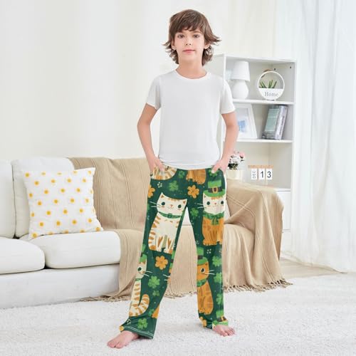 Cat Lucky Clovers Boys Long Pants Soft Trousers Elastic Waist Kids Lounge Bottoms with Pockets S-XL 4