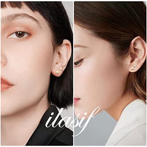 More information about Sterling Silver Stud Earrings - 4 Pairs Small Gold Plated Ball Earrings Triangle Stud Star Moon Round CZ Earrings Bar Earrings Set Hypoallergenic Cartilage Tragus Earrings