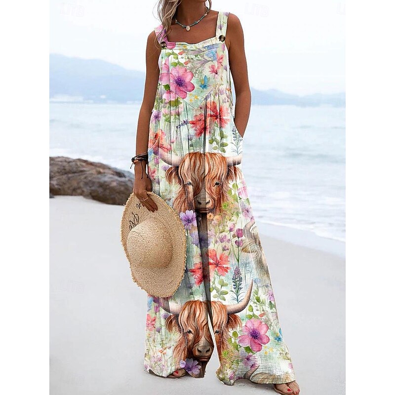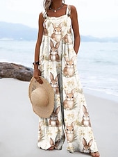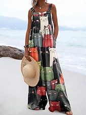 HOT ! Women's Dungarees Active Graphic Sleeveless Wide Leg Vacation Street Loose Fit Black White Orange Summer